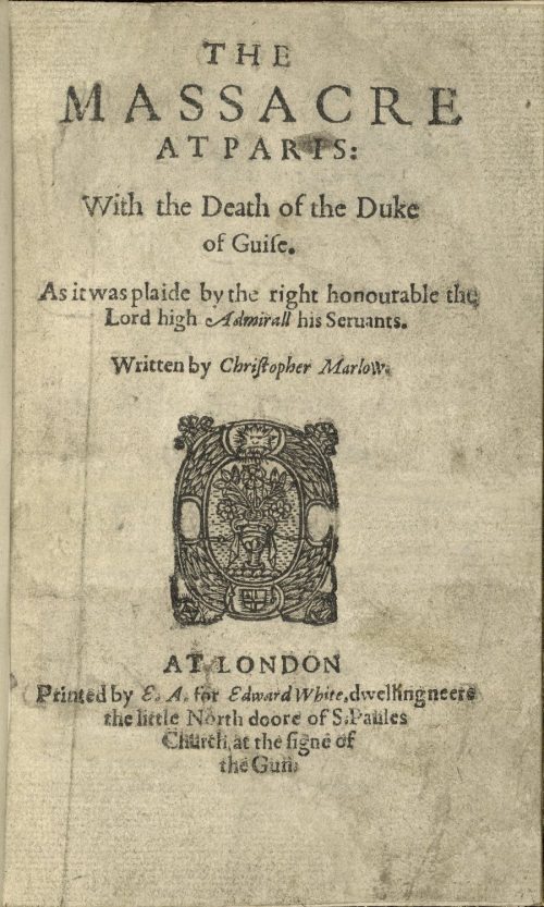 In 1593, Christopher Marlowe’s play The Massacre at Paris debuted on the London stage. Marlowe’s play is a fictionalized portrayal of the famous St. Bartholomew’s Day Massacre of August 24, 1572.